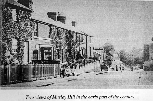 Right at the top of Musley Hill, opposite to the old Central School, was a walled meadow, one side of which ran down Musley Villas towards High Oak Road. When I was lifted up I could see from over the wall that the grass was lush and green with lots of buttercups and was grazed by a small number of beautiful Jersey cows, owned, I think by one of the ladies living in the Villas. The cows had a thatched cowshed to shelter in. Musley Villas were definitely above our class. To an under eight-year-old the inhabitants - on the rare occasions when any were seen - all seemed to be elderly ladies of some elegance. One Villa had a mulberry tree in the front garden, and it was altogether an agreeable area. The cows were regularly seen to by an elderly man who rode an equally elderly bicycle with great concentration in a slow, dead straight line. On one occasion I watched fascinated from the opposite side of the road as, without turning his head or even a hair of it, the old man rode straight over a leg which a boy sitting on the pavement had thrust out in front of the front wheel.