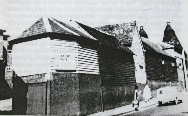 But let us pause at the corner and look up Baldock Street. On the left was The Hope and the large Hope Malting with its low windows where we could peer in and watch the barley being "worked" with the steeping pit at the top end. Out of sight of our vantage point was the Snowdrop Laundry, tucked in between the malting and the Canons Hotel (now Snowdrop House). We would have glimpsed Thunder Hall but the main group of buildings on the right was Caroline Court and, on the corner of Coronation Road, the huge, corrugated iron building of Mr Harry Matthews' garage.